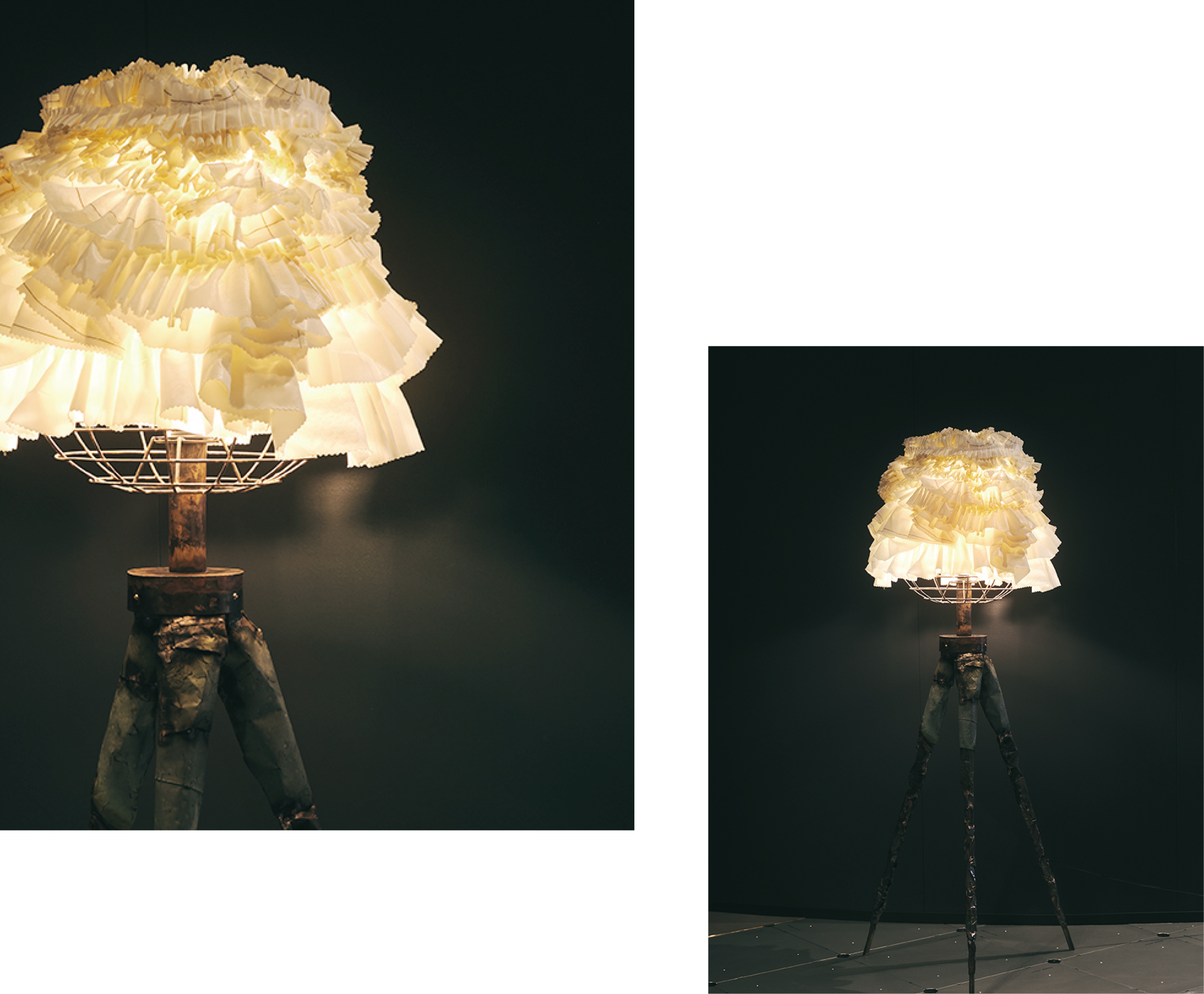 廃棄エアバッグと銅の端材でアップサイクルした美しいスタンドライトが完成しました。