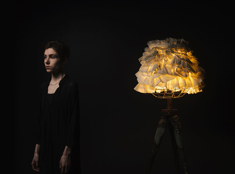 様々な廃材を素材としてドレスなどにアップサイクルする